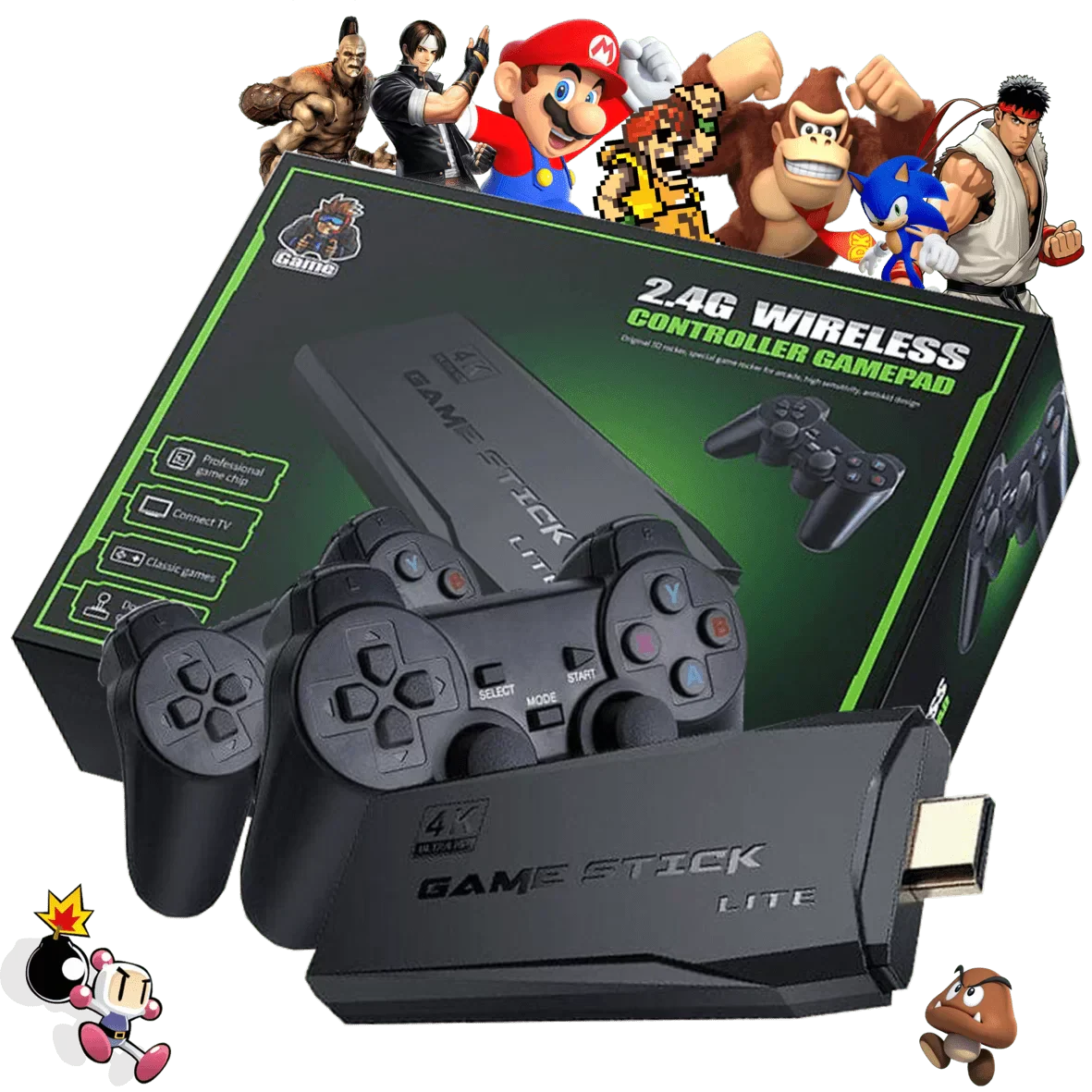 Rivivi la magia dei videogiochi retrò con la nostra Game Stick. Dotata di un'ampia libreria di giochi preinstallati, emulatori avanzati e un design compatto, Game Stick è il compagno perfetto per i nostalgici dei giochi e per chi vuole introdurre i più giovani ai classici del passato.