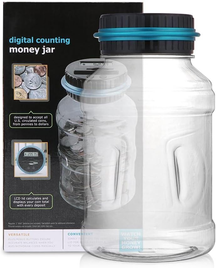 - [Materiale Durevole] - Questo barattolo per soldi è realizzato in ABS trasparente, più durevole e robusto dei materiali in vetro/ceramica e più leggero del salvadanaio in ferro. Alimentato da 2 batterie AAA