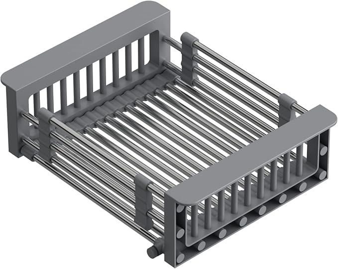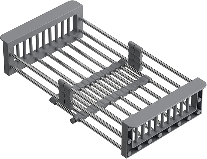 Scolapiatti Telescopico in Acciaio Inox – Cestello Scolatutto da Lavello con Braccioli Regolabili, Salvaspazio per Stoviglie, Frutta e Verdura