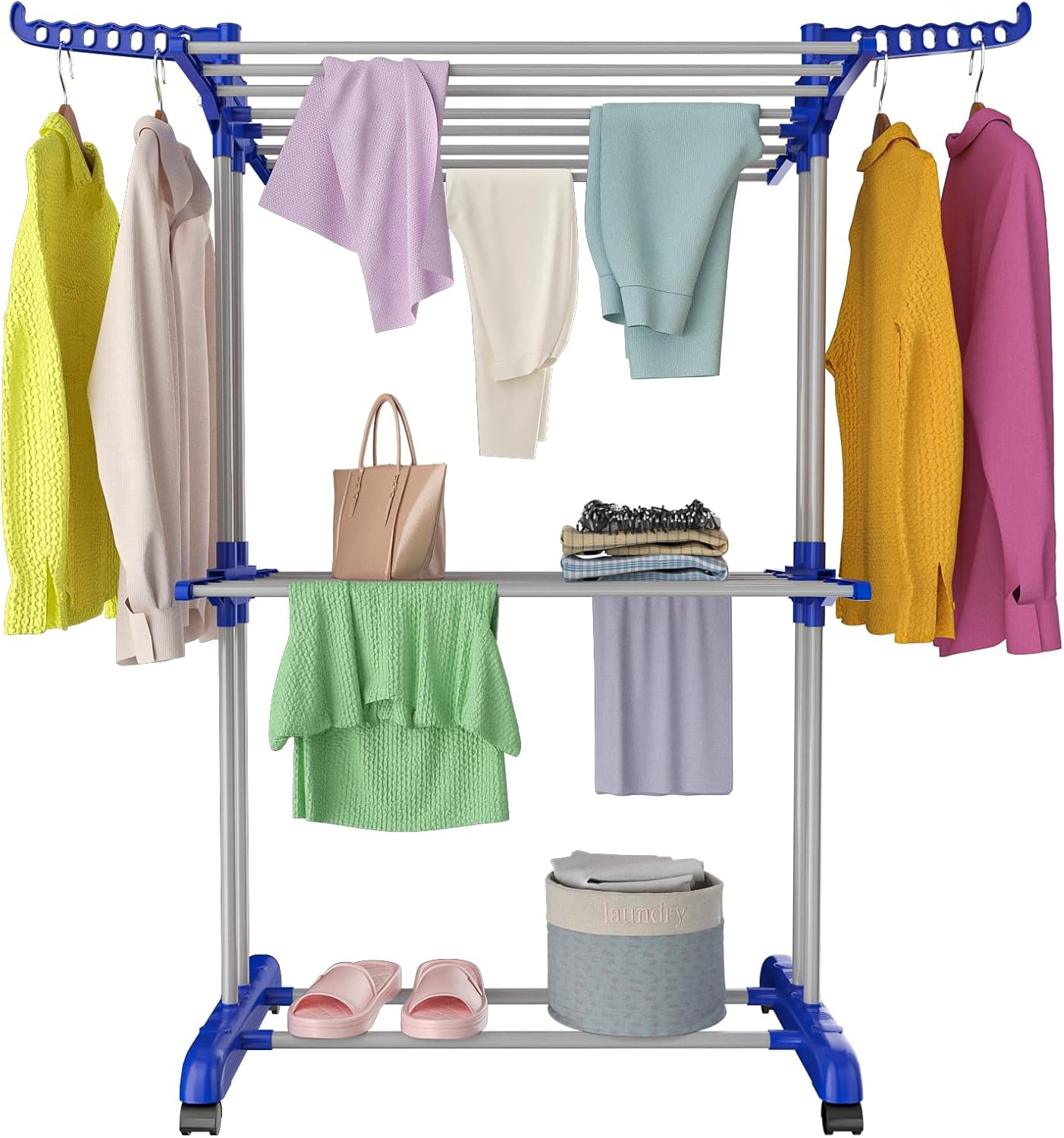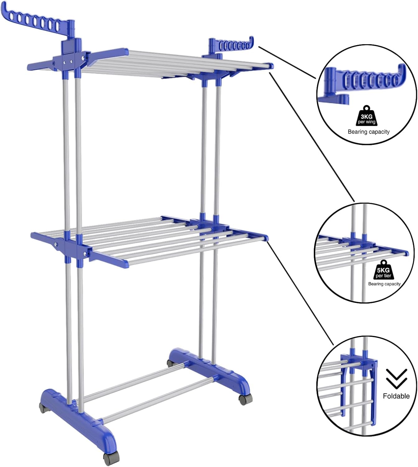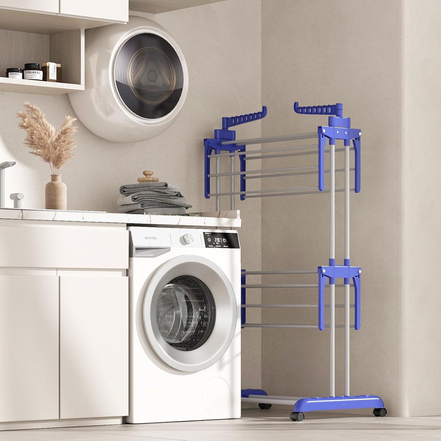 Stendini Estensibile a 4 Livelli in Metallo, Stendibiancheria Salvaspazio per uso Interno/Esterno,73 x 64x 170 cm