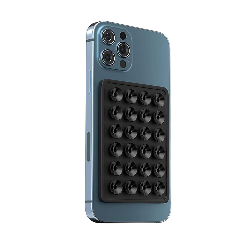 Materiale: Silicone + plastica ABS - Dimensioni: 7,5 x 5,5 cm - Numero di ventose: 24 - Superfici compatibili: Vetro, specchi, metallo, plastica liscia, legno laccato - Utilizzo: Supporto per smartphone, power bank, hard disk - Peso: 50 g